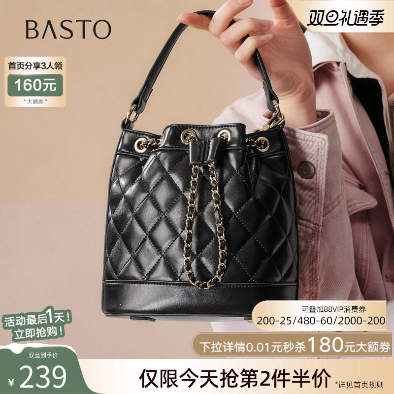 百思图26春季商场新款菱格链条包时尚水桶包单肩斜挎包女TY076AX6