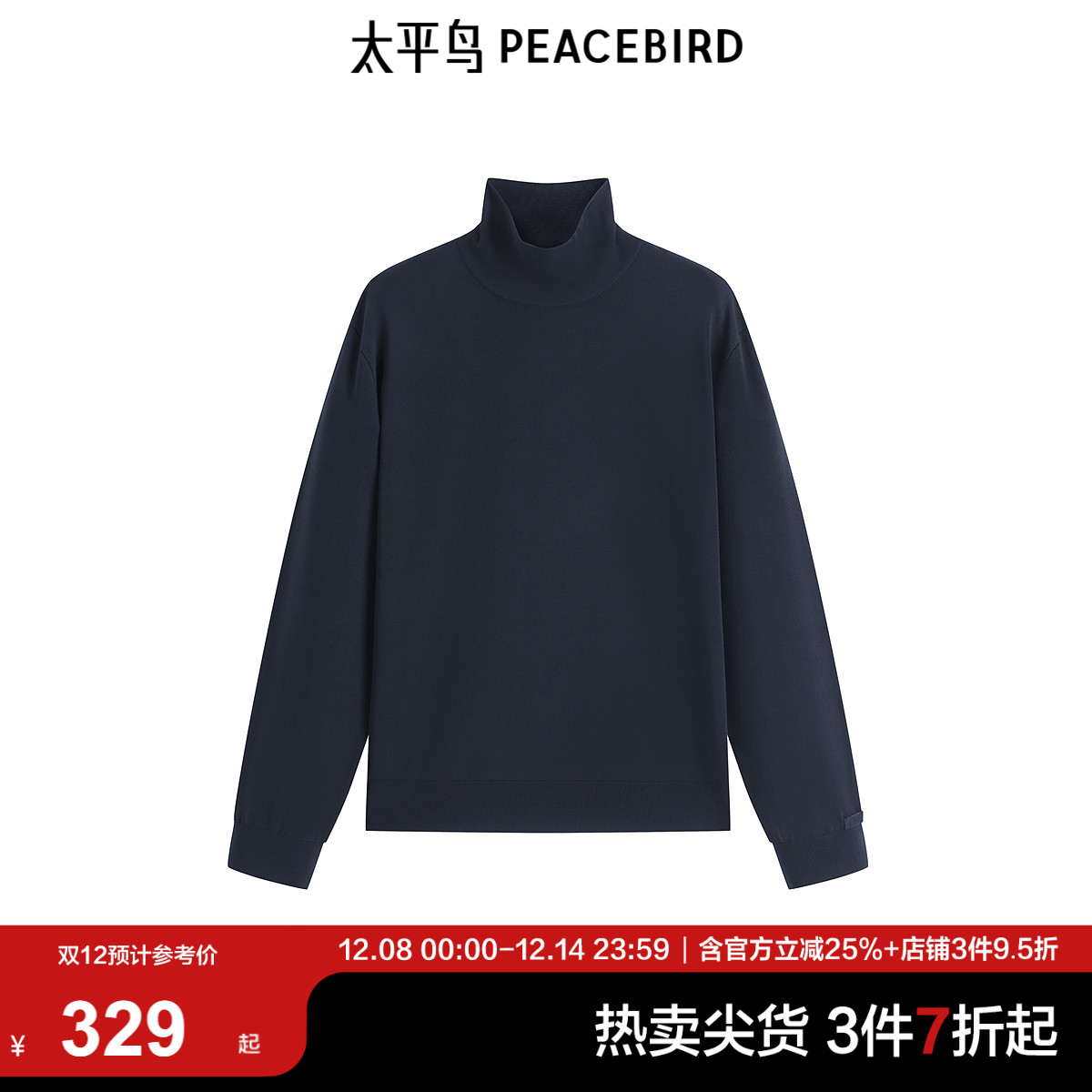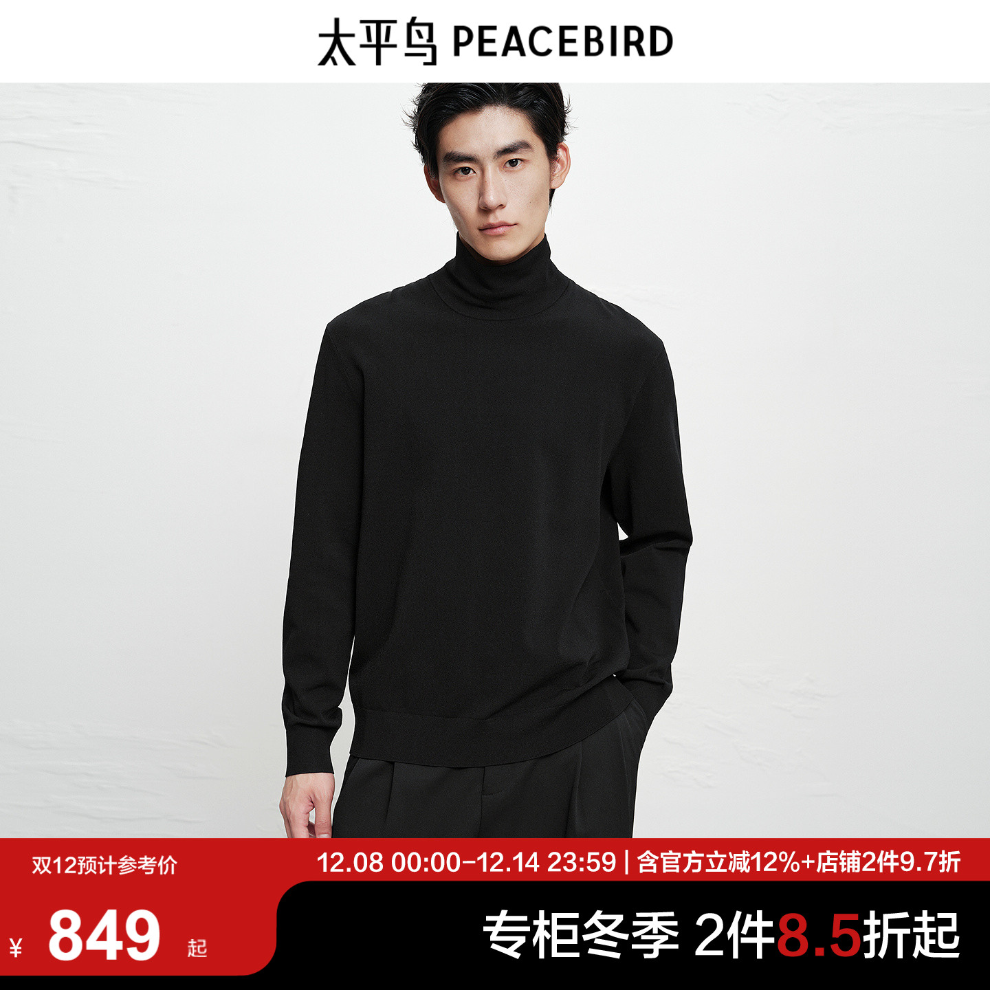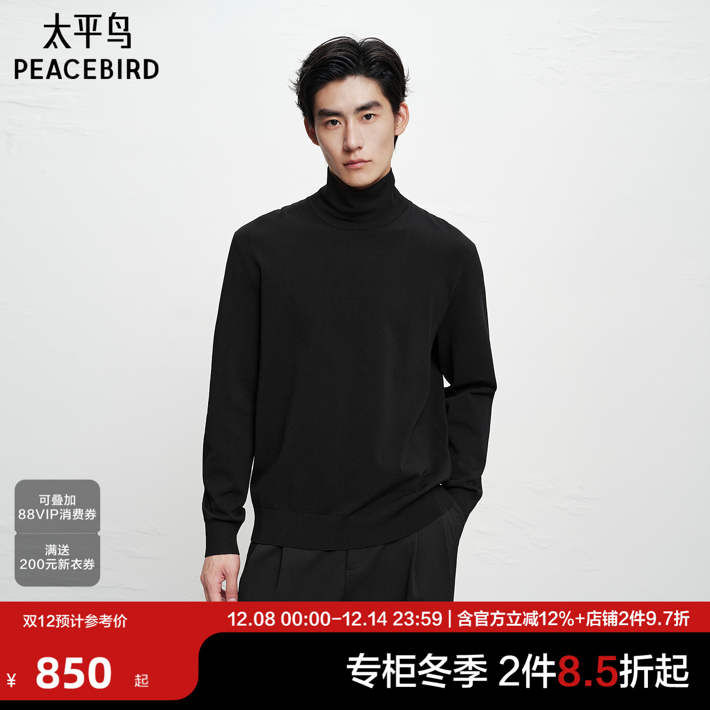 【商场同款】太平鸟男装高领毛衫冬新款纯色通勤打底衫B1EGF4B13