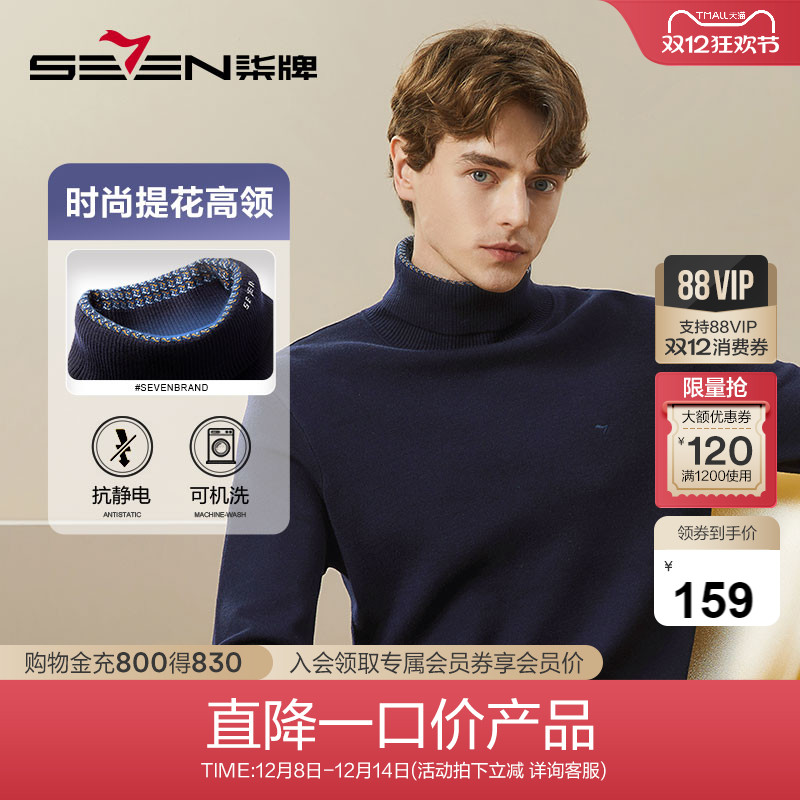 【可机洗针织衫】柒牌清仓男装高领毛衣冬季防静电保暖内搭羊毛衫