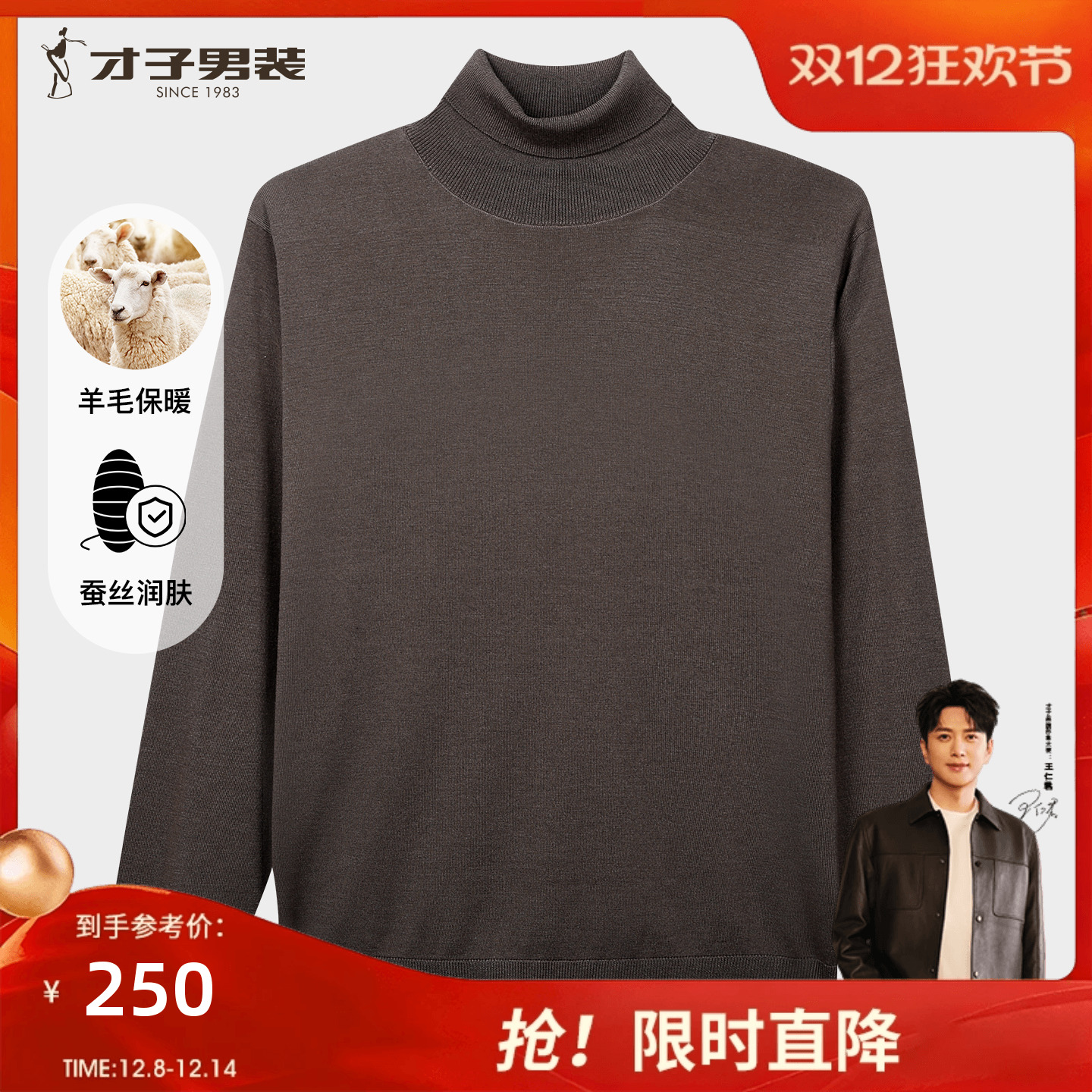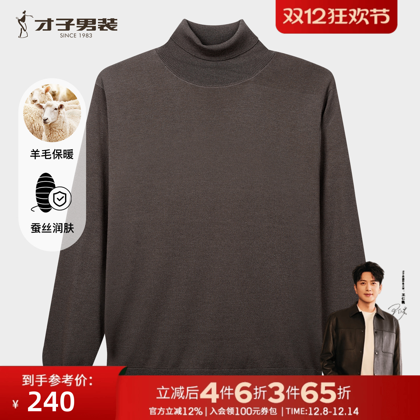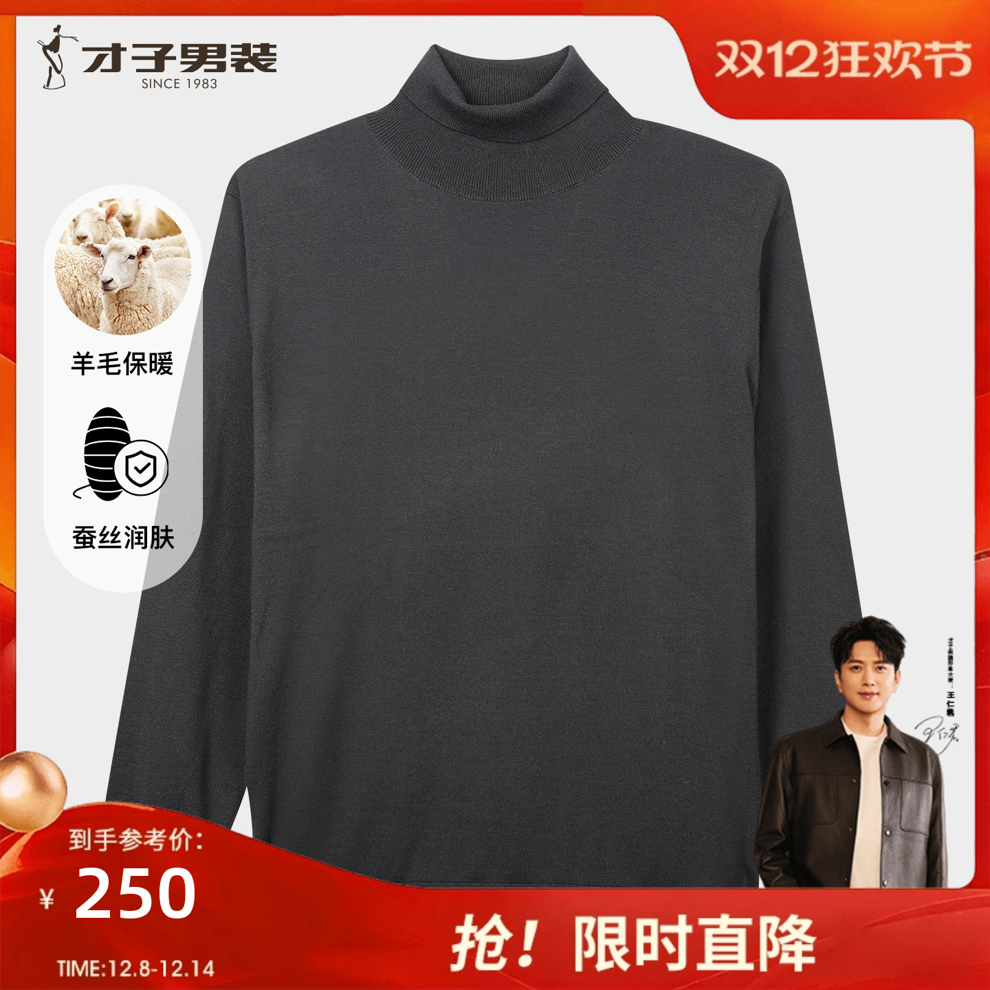 才子男装高领羊毛针织衫男2025秋冬季新款内搭保暖套头桑蚕丝毛衣