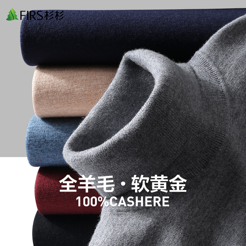 【100%纯羊毛】杉杉男装高领毛衣男2025冬季新款纯色宽松羊毛衫