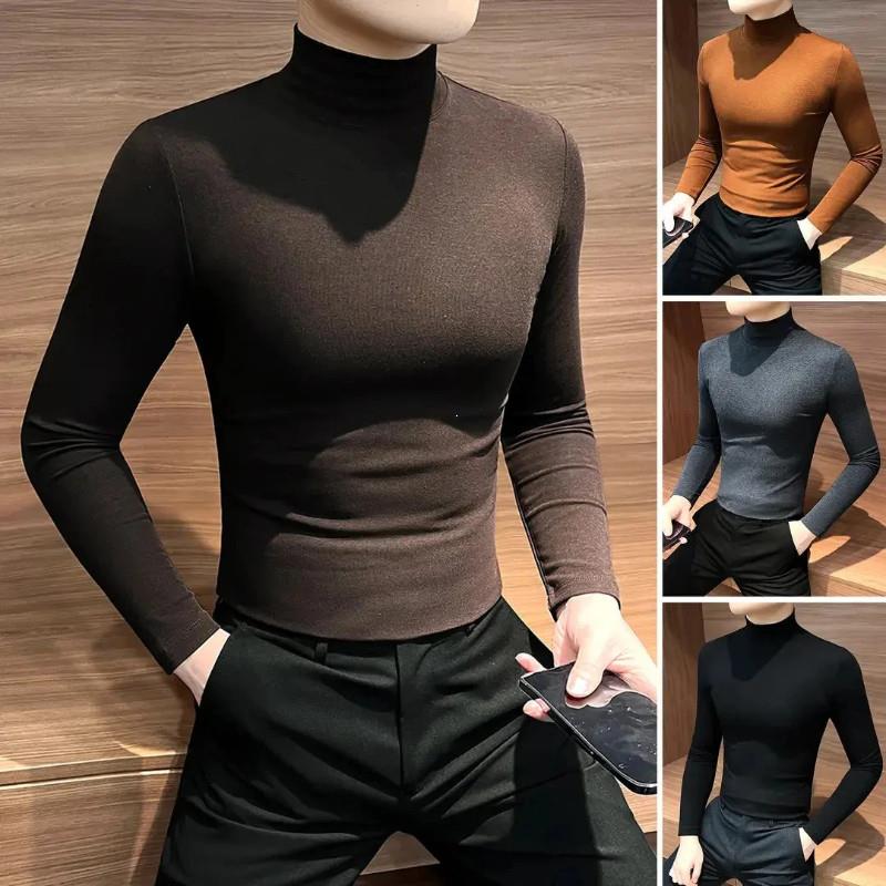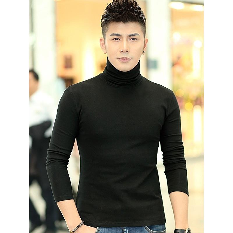 秋冬薄款长袖t恤男装高领外穿打底衫潮流男士修身可翻领纯色上衣