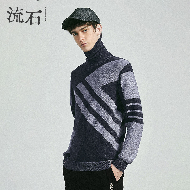 流石男装高领学院风毛衣男士2025年冬季保暖潮几何加厚毛衣针织衫