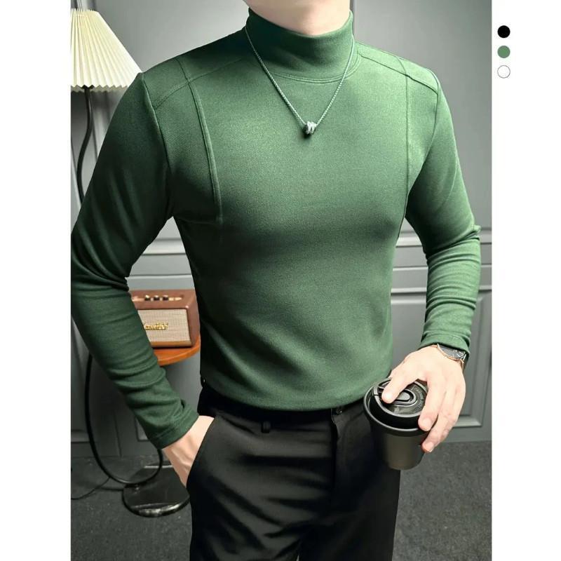 路西威男装高领长z袖t恤秋季2025k新款高级感修身立体感男士打底