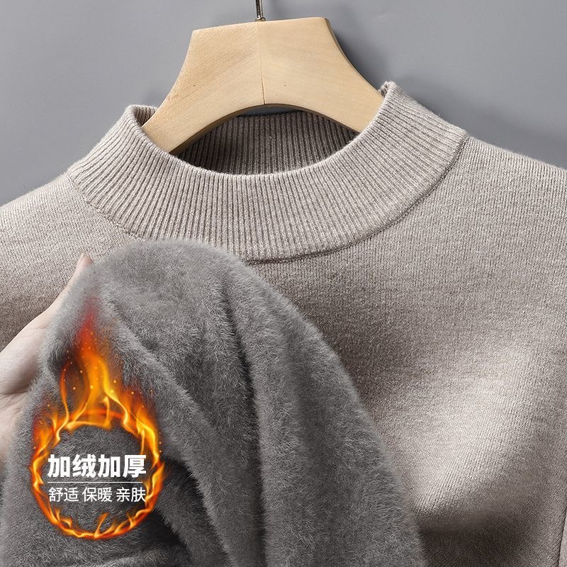 秋冬季加绒加厚毛衣男士纯色保暖针织衫线衣男装高领翻领打底衫男