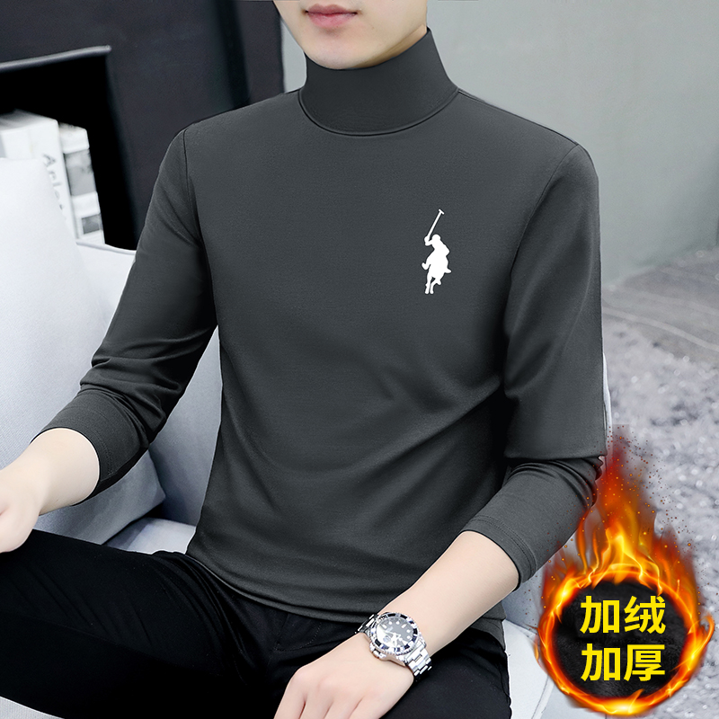 【一体绒】加绒加厚纯棉长袖t恤男装高领秋冬季潮流半高领上衣服
