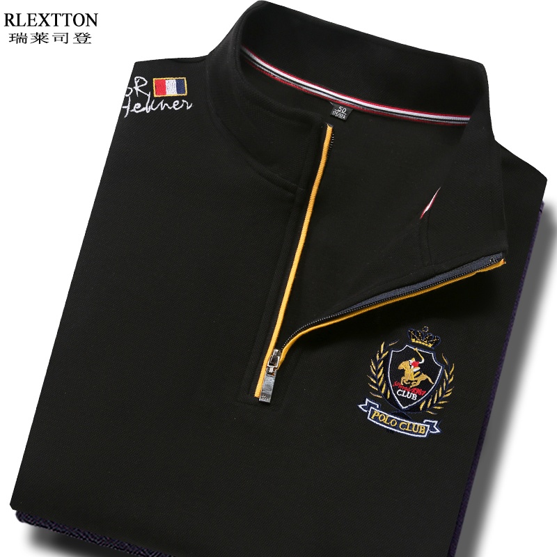 立领半拉链长袖t恤男装高领POLO衫纯棉上衣服中年爸爸高档秋冬季