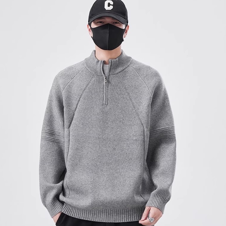 半拉链毛衣男装高领时尚休闲慵懒风宽松大码秋冬季提花针织打底衫