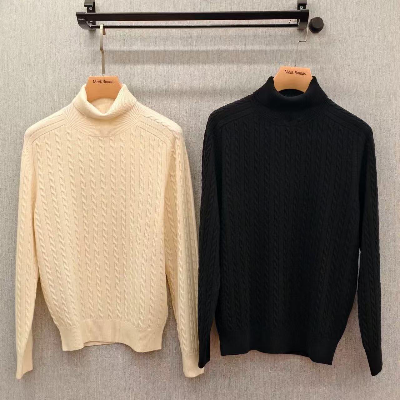 2025冬季男装高领绞花针织衫男羊毛混纺毛衣秋冬保暖套头衫625