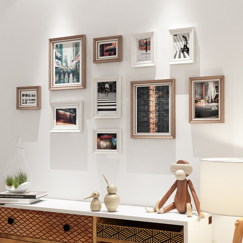 简约现代照片墙装饰客厅免打孔创意组合相框挂墙相片墙实木背景墙