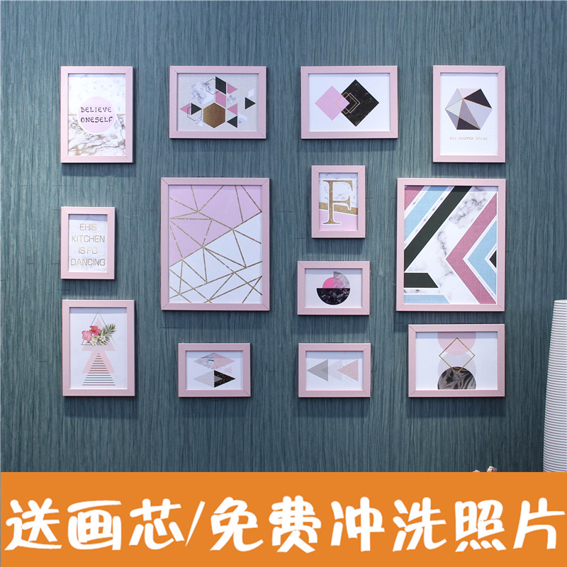 现代简约照片墙免打孔卧室装饰相框7寸挂墙九宫格客厅创意组合框