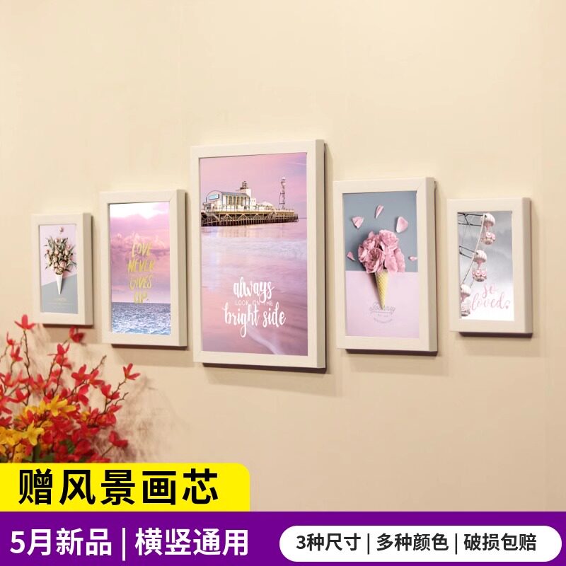 新5框照片墙装饰现代网红简约免打孔挂饰墙壁北欧风格挂墙相框画