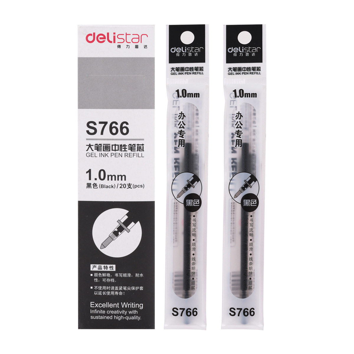 得力S760黑色中性笔芯 0.5mm标准子弹头水笔芯通用替芯20支装一盒 得力笔芯 水性笔芯 中性笔笔芯0.5通用替芯