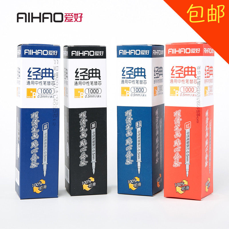 爱好学生文具笔芯 中性笔芯 水笔芯0.5mm子弹头签字笔替芯1000
