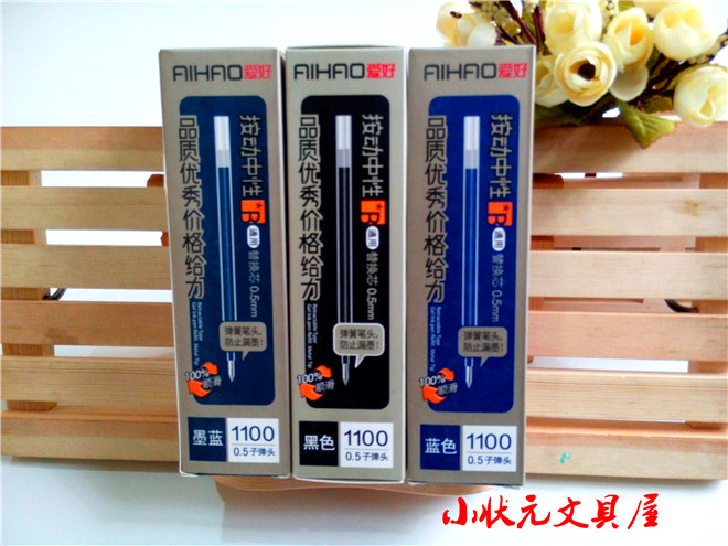爱好1100 按动水笔芯 中性笔笔芯 0.5MM 学生办公通用替芯 满包邮