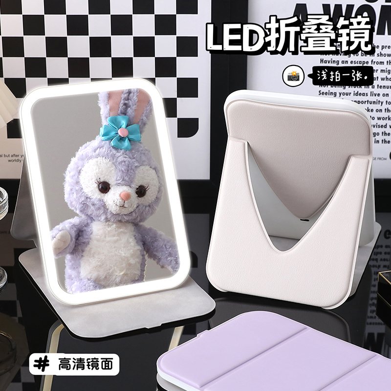 LED折叠化妆镜台式桌面梳妆台简约便携家用学生宿舍女随身小镜子