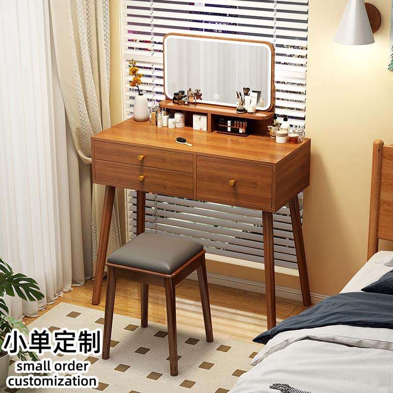 叁格木简易梳妆台简约租房家用小户型收纳化妆桌影楼带灯妆台桌子