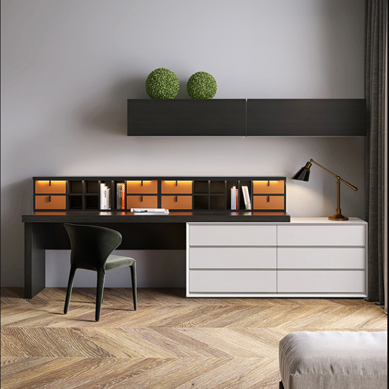 宜洛斗柜一体梳妆台简约现代化妆桌卧室伸缩实木黑色化妆台床尾柜