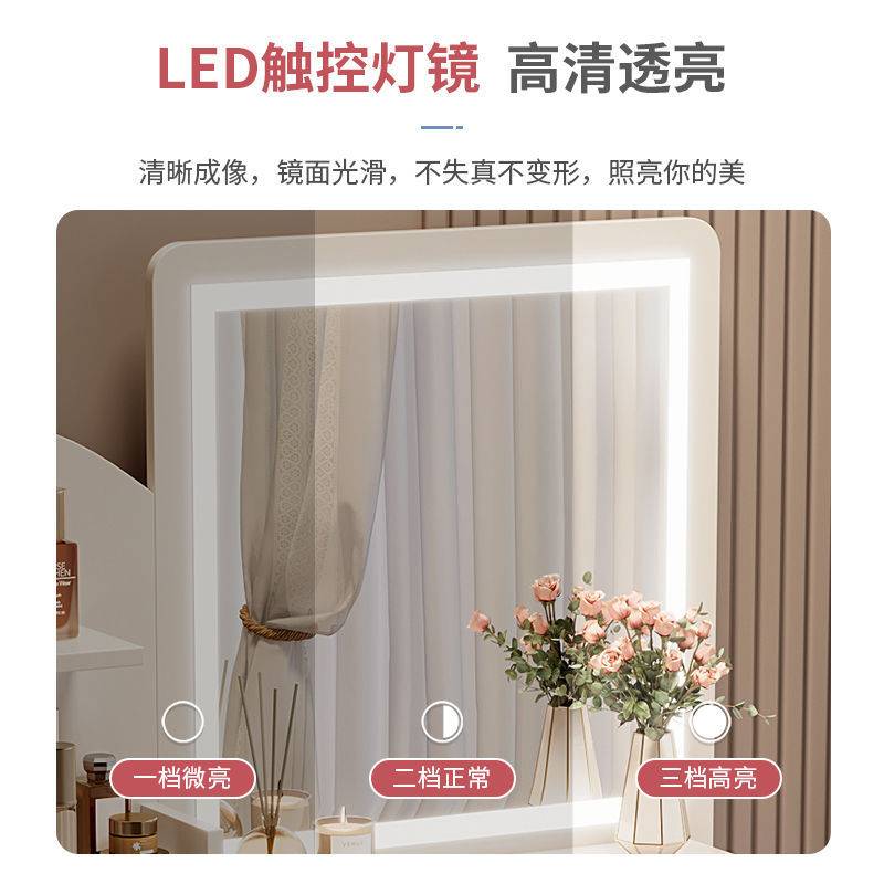梳妆台简约卧室现代小户型书桌一体组装化妆桌带触摸灯带镜子桌子