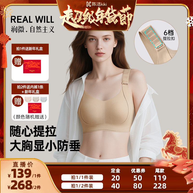 【付定金!k姐年货节】润微任意提内衣女大胸显小提拉防下垂文胸