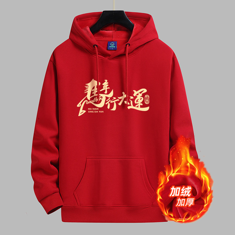 马年本命年红色卫衣男女加绒连帽新年年会广告衫定制logo套头帽衫