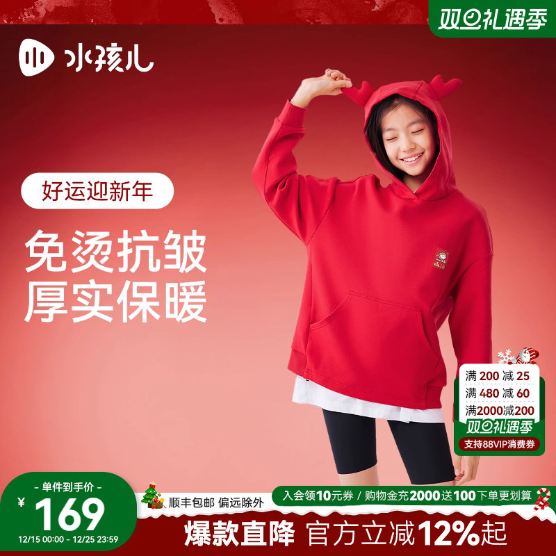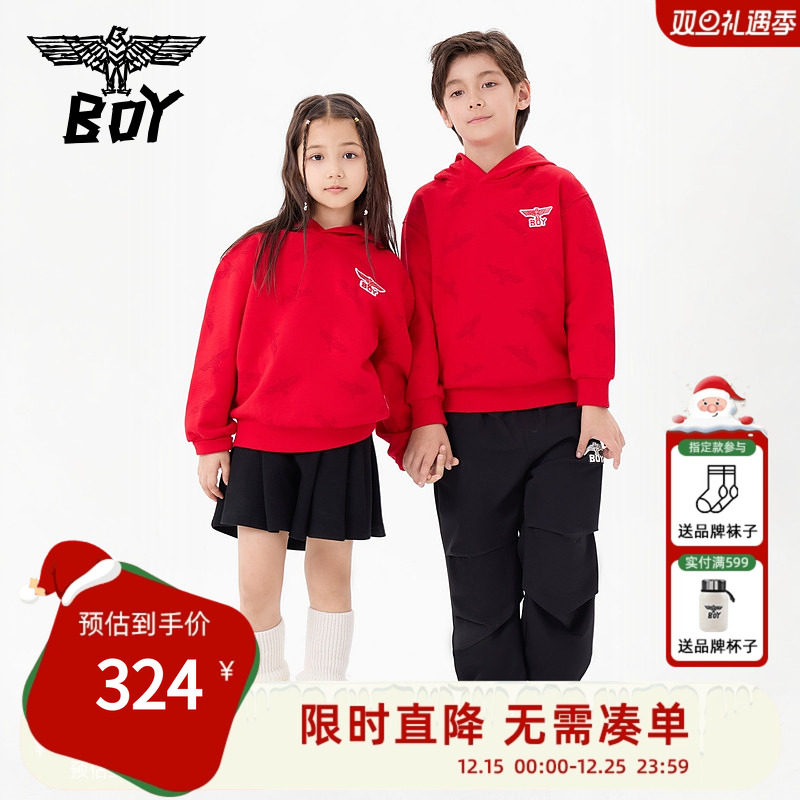 【新年限定】BOY童装 秋冬红色卫衣连帽套头上衣圣诞男女童中大童