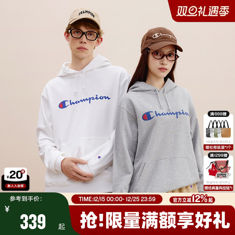 Champion冠军连帽卫衣男春秋款情侣纯棉套头卫衣女红色复古圣诞风