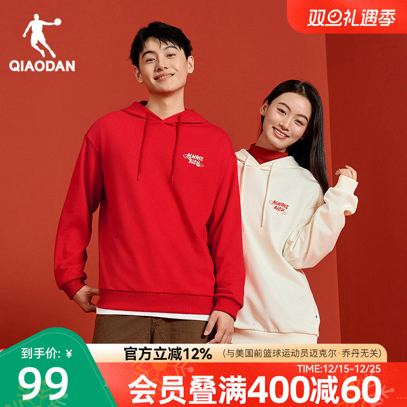 乔丹红色卫衣男女同款冬季新款连帽新年宽松本命年上衣情侣套头衫