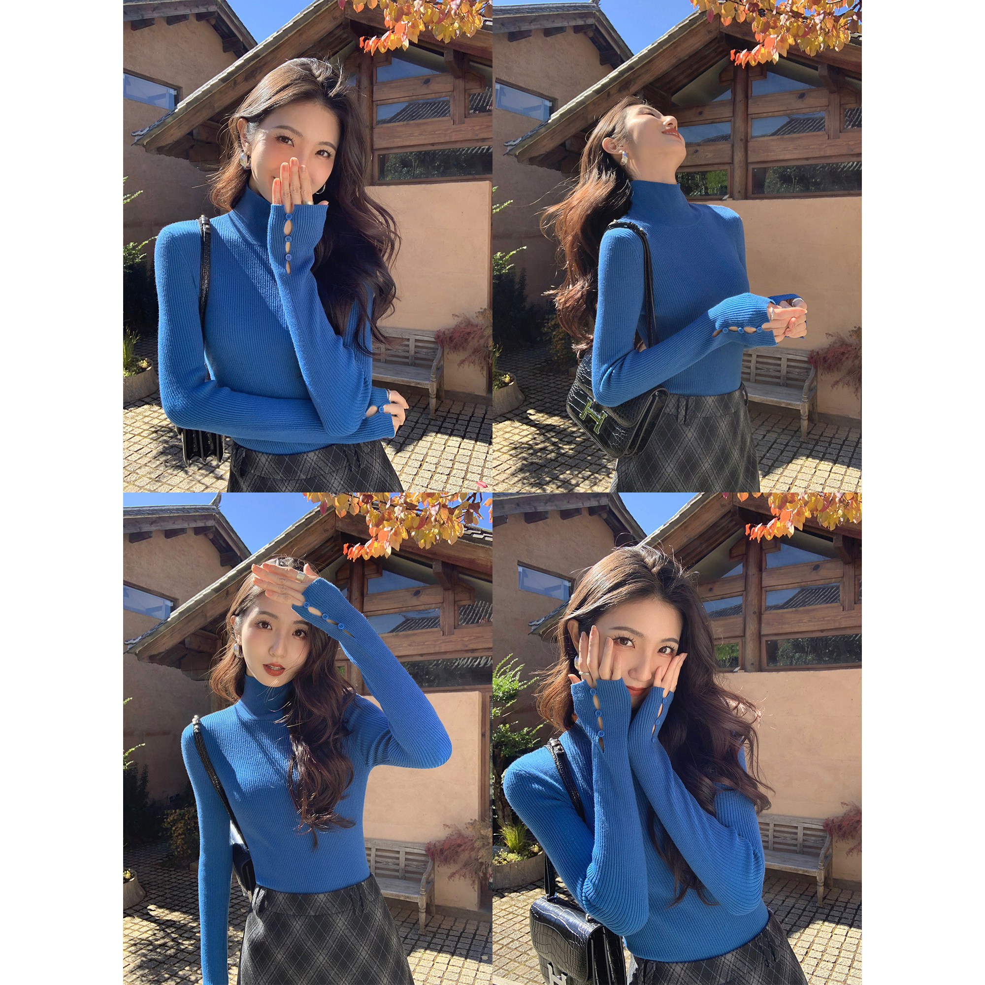 - 女紧身高领打底毛衣