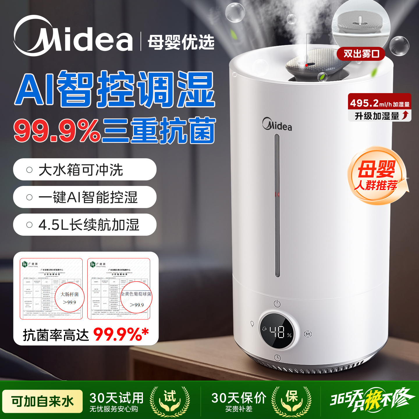 美的加湿器家用卧室静轻音抗菌孕妇婴儿3D50空气加湿大喷雾2025款