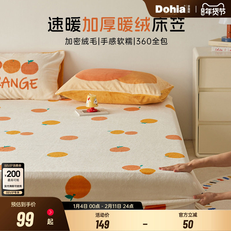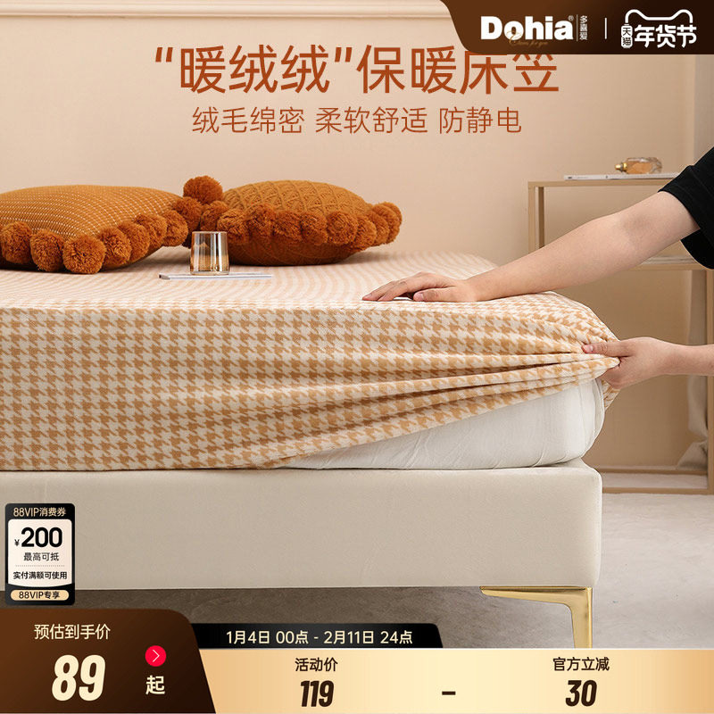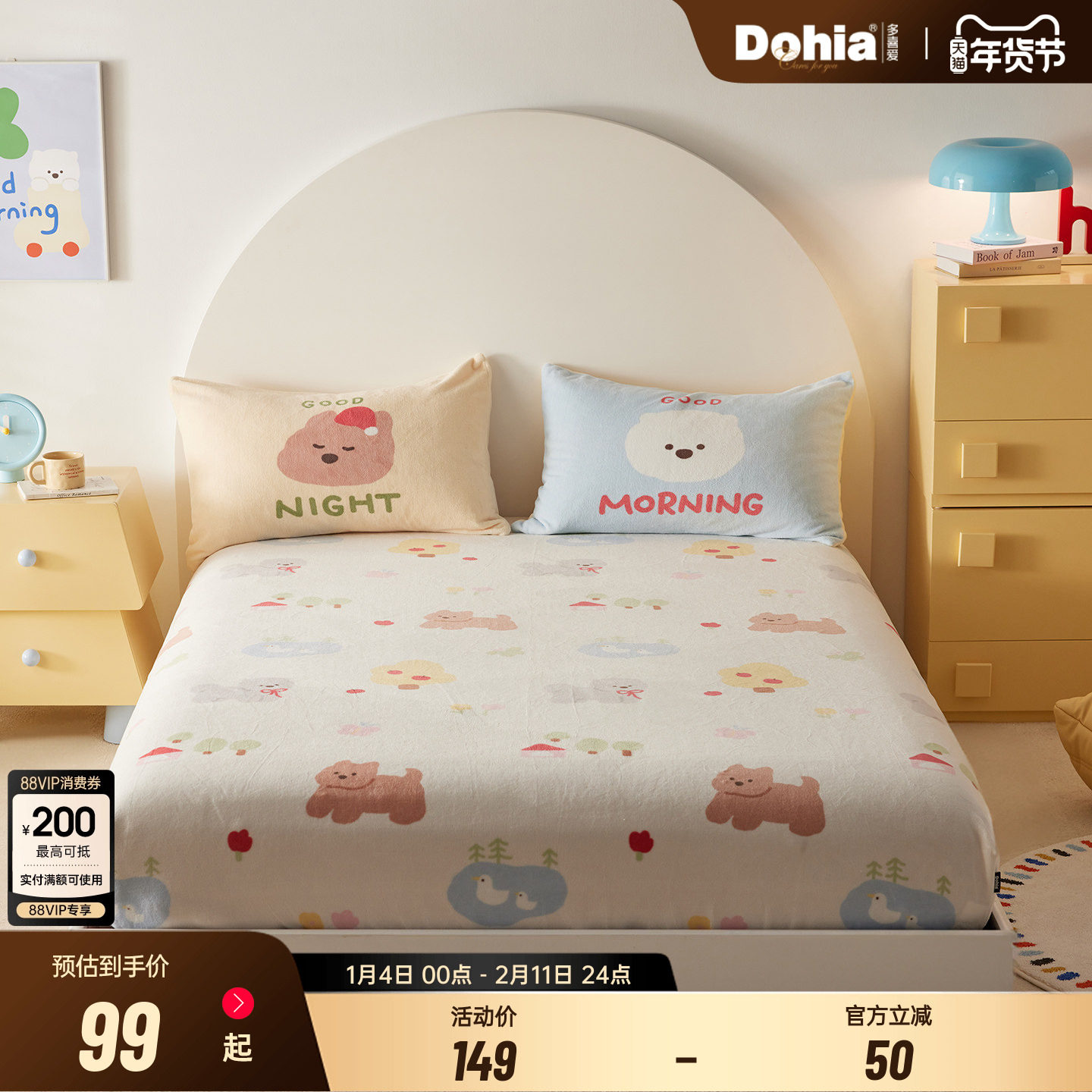 多喜爱加厚法兰绒床笠珊瑚绒亲肤保暖防滑防尘可机洗单双人床垫罩