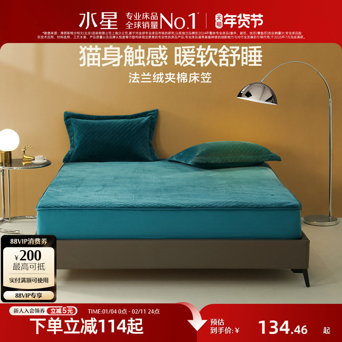 水星家纺法兰绒床笠单件珊瑚绒床罩秋冬床垫保护罩床笠罩床上用品