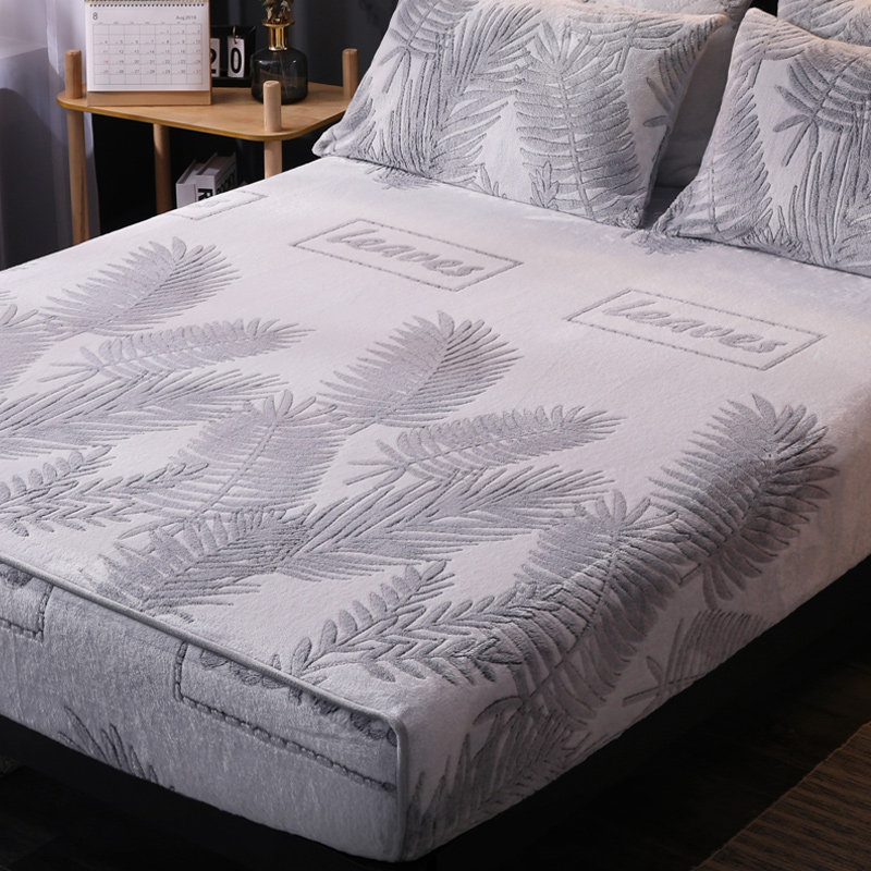 冬季雕花牛奶绒床笠单件加厚珊瑚法兰绒床笠三件套加绒床垫保护套