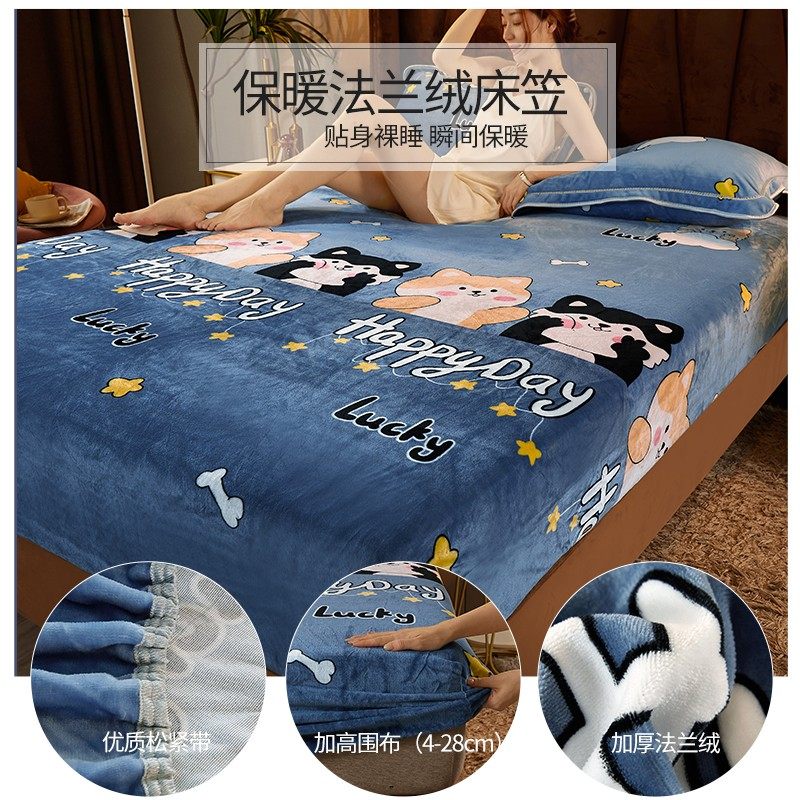 冬季珊瑚牛奶法兰绒床笠单件床垫床单床套床罩加绒防尘罩防滑固定