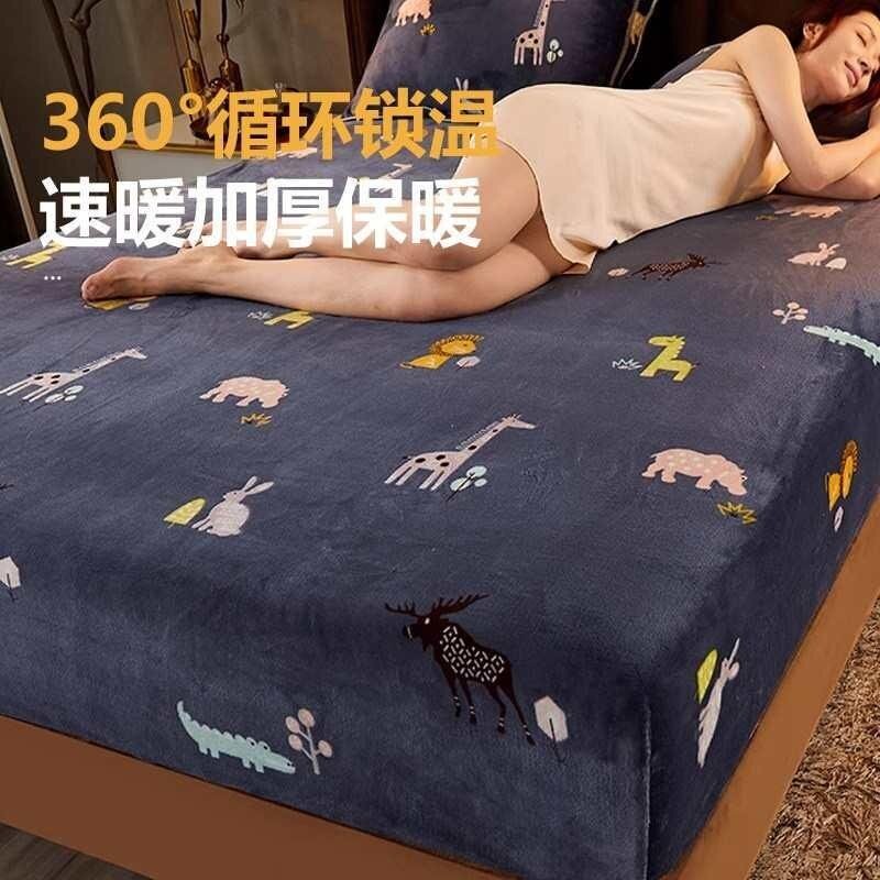 珊瑚绒床笠冬季加绒牛奶绒床罩加厚法兰绒床笠罩床套防滑保暖定制