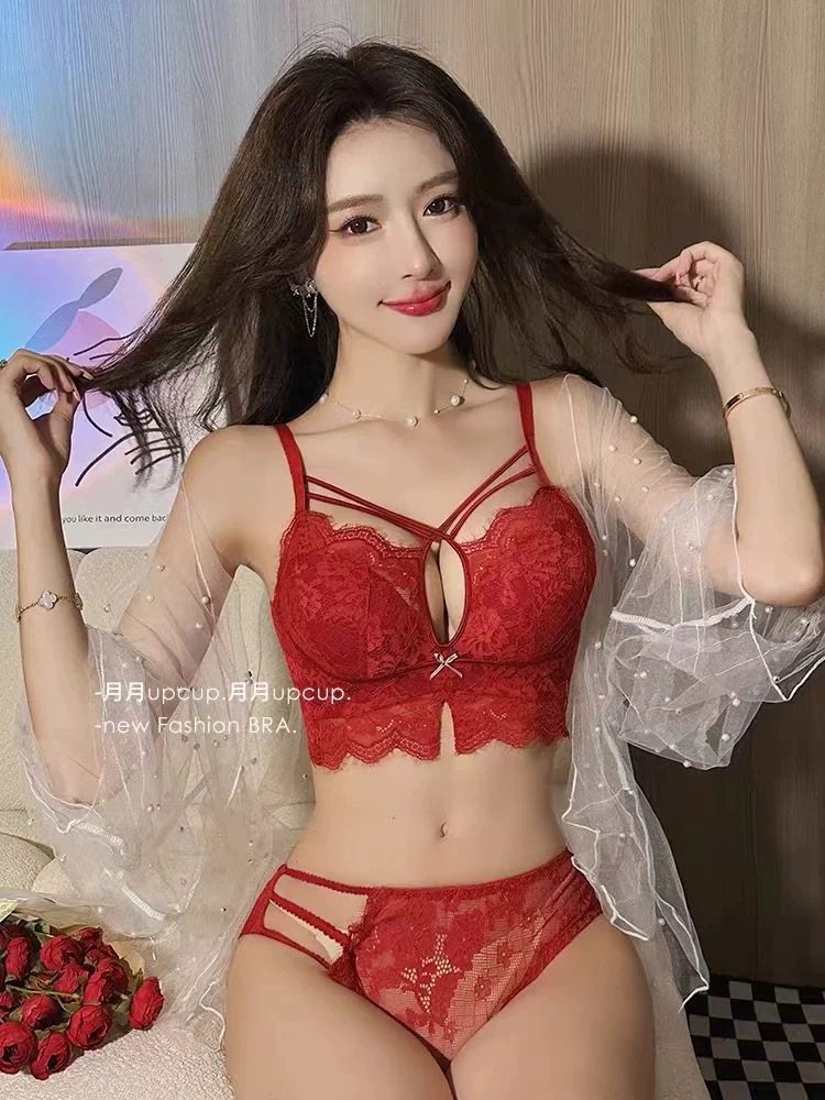 纯欲蕾丝马年红色内衣女本命年套装小胸聚拢显大加厚文胸结婚新娘