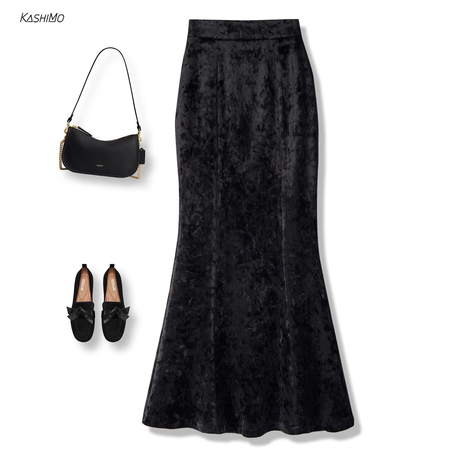 金丝绒半身裙女欧货2025冬季新款高腰显瘦百搭包臀裙中长款鱼尾裙