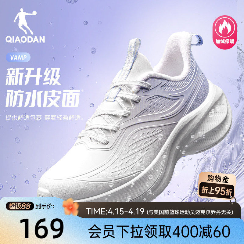乔丹跑步鞋女款皮面防水软底专业运动鞋减震轻便厚底增高学生跑鞋