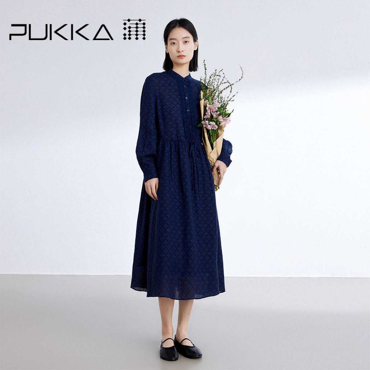 - 碎花棉长袖连衣裙