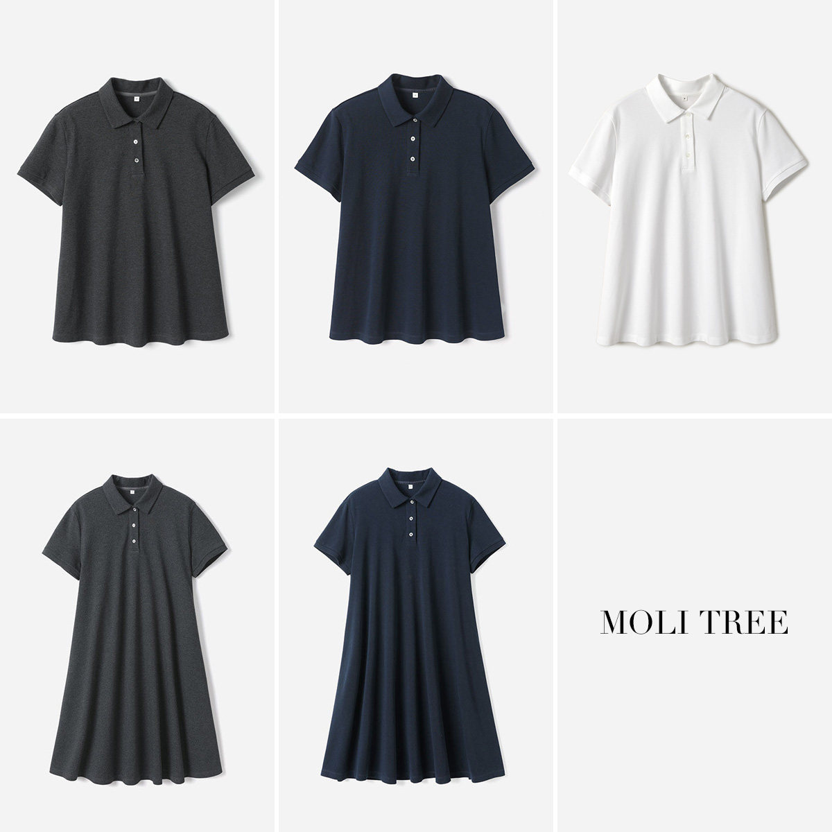 WLQ08086 茉莉雅集 P家凉爽舒适POLO领全棉短袖连衣裙/T恤春夏女