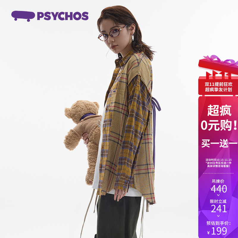 明星同款PSYCHOS高密绒宽松复古格子衬衫外套男女同款PA3USSH088
