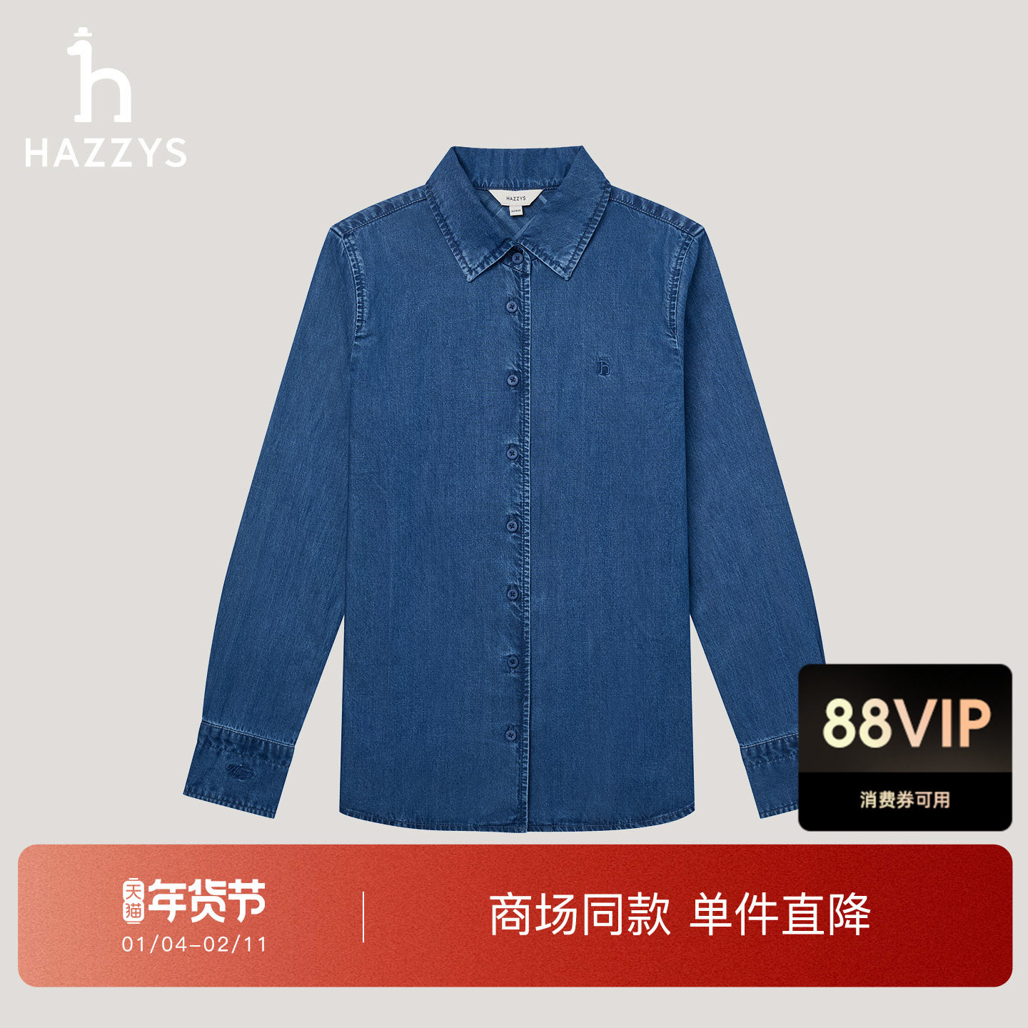 【宋佳明星同款】Hazzys哈吉斯蓝色牛仔衬衫女2025年秋季新款衬衣