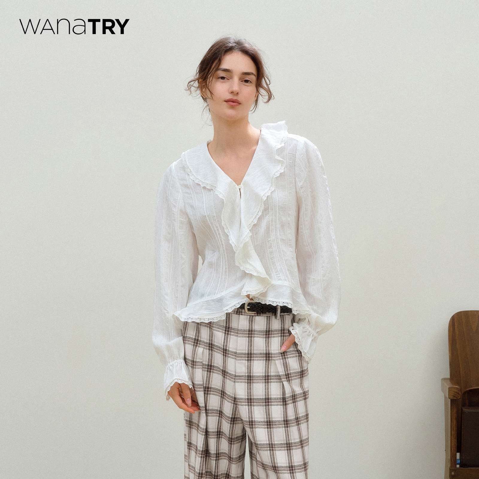 【明星同款】wana try法式荷叶边白色衬衫2025秋季新款百搭女装