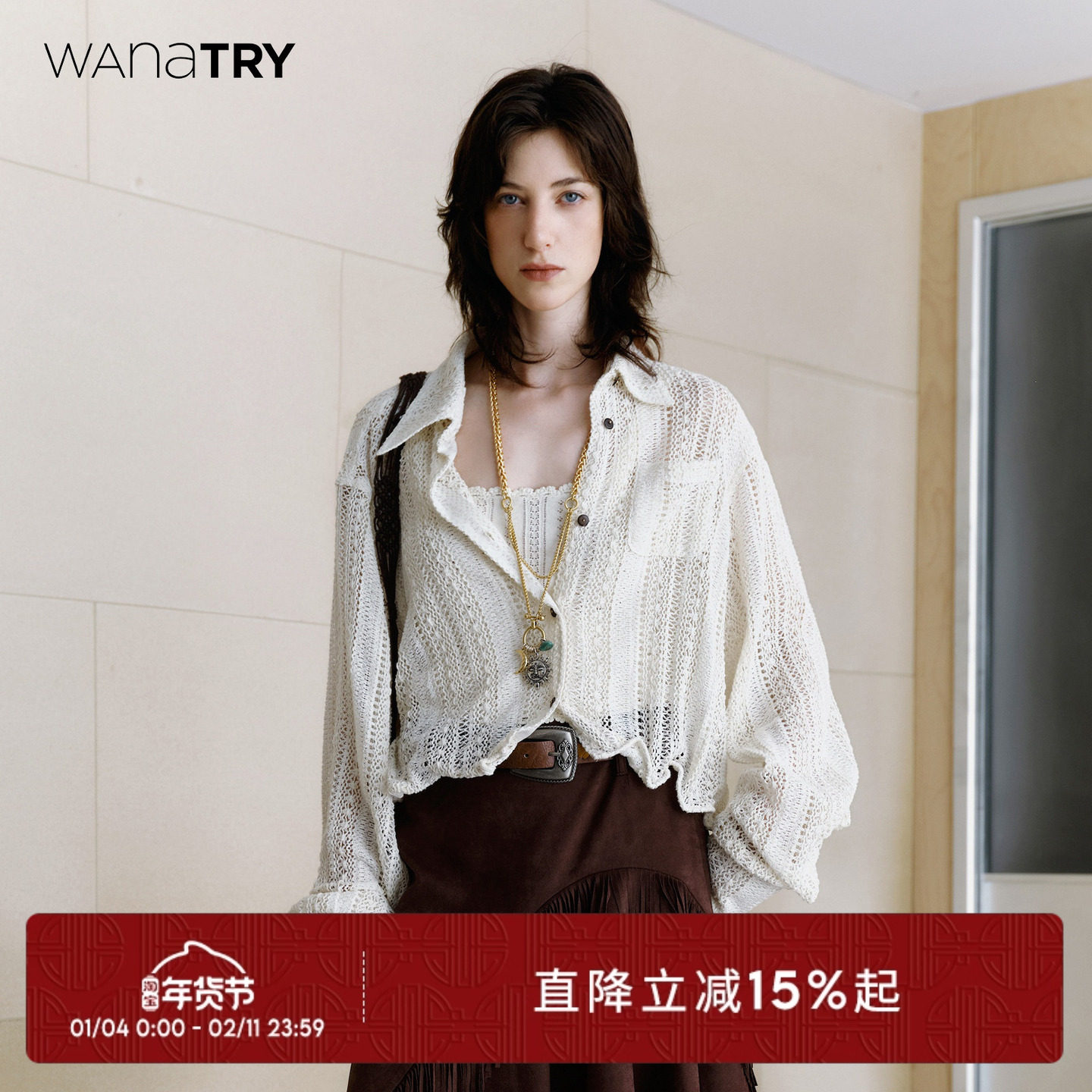 【明星同款】wana try镂空编织廓形短款衬衫25新品米白时髦上衣女
