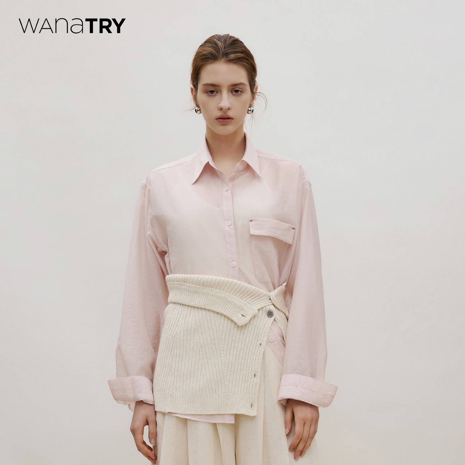 【明星同款】wana try清透感防晒蔷薇粉气质衬衫法式外搭女衬衣