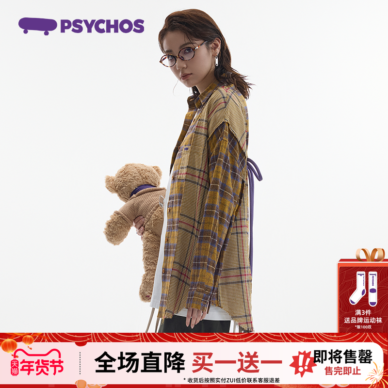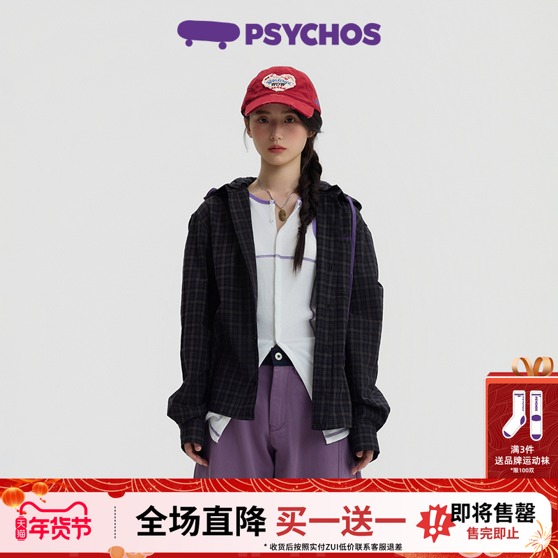 【买一送一】明星同款PSYCHOS可拆卸连帽格纹衬衫纯棉外套男女款