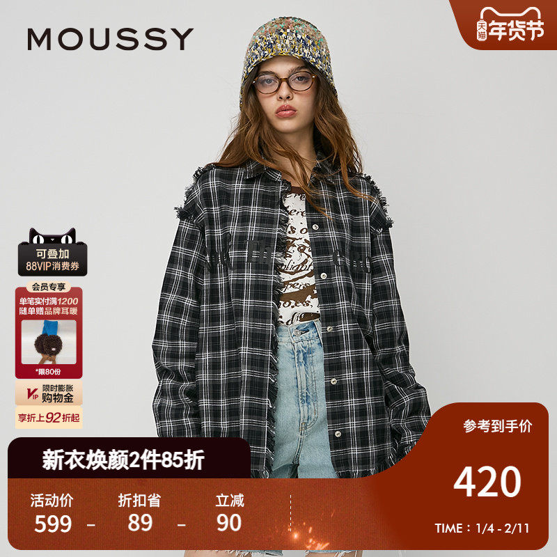 【明星同款】MOUSSY 秋季新品美式校园风衬衫女028HAZ30-0491