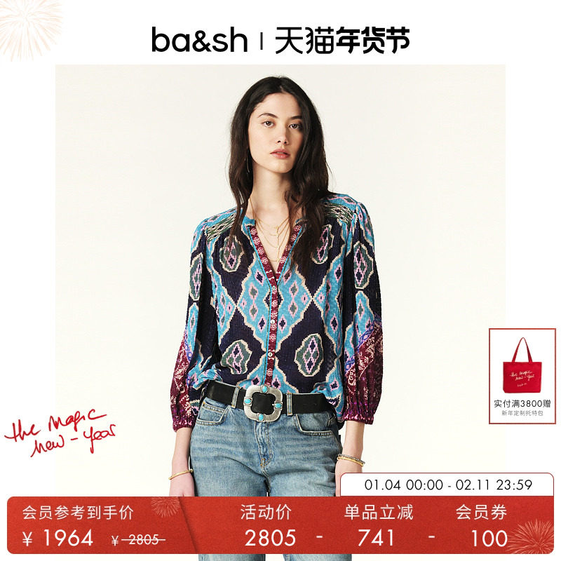 【明星同款】bash波西米亚风V领气质女士上衣植绒衬衫衬衣1E24MAD
