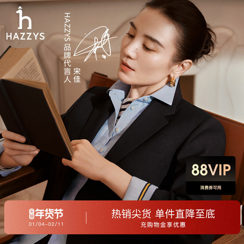 【宋佳明星同款】Hazzys哈吉斯2025秋季新品长袖女士衬衫休闲上衣