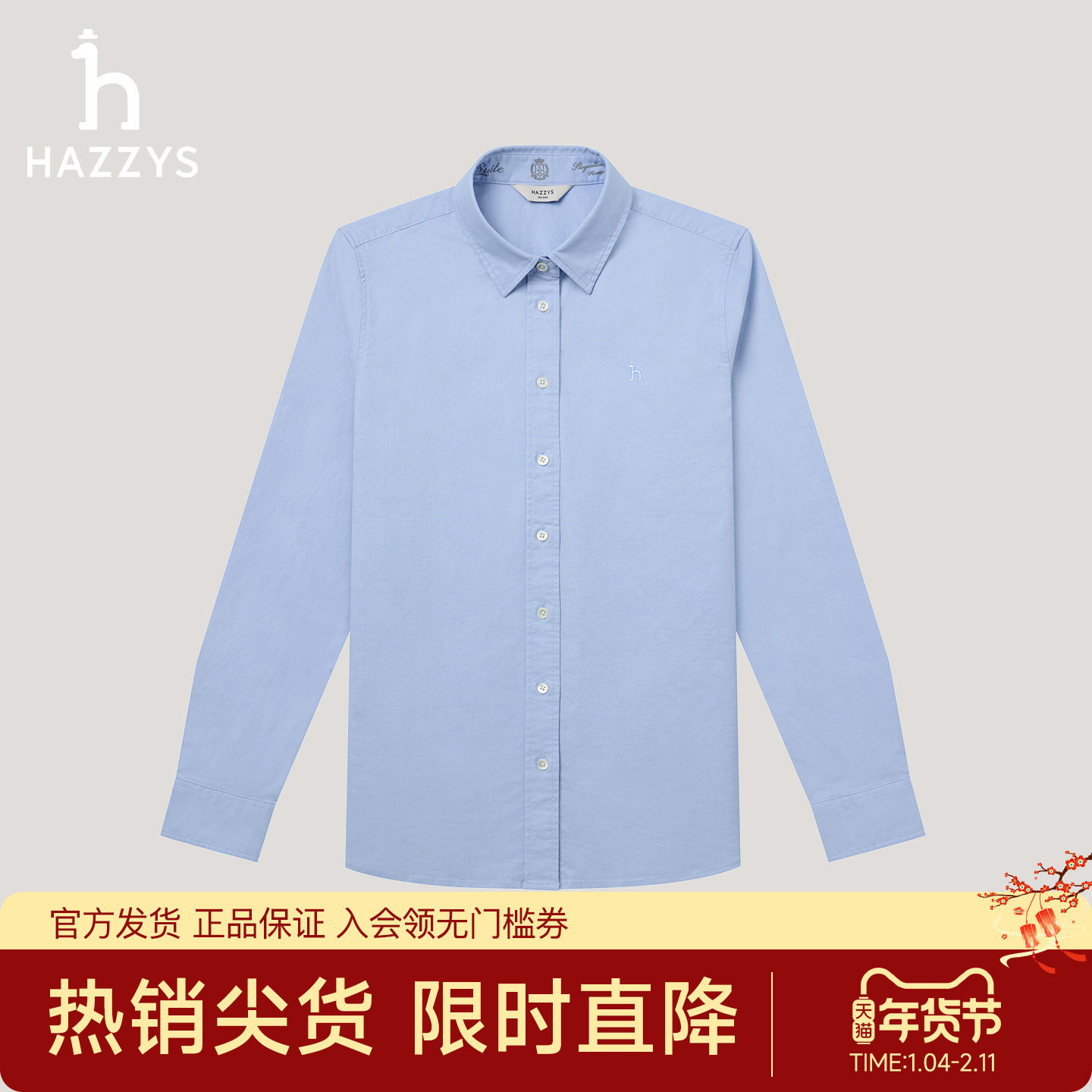 【宋佳明星同款】Hazzys哈吉斯牛津纺衬衫上衣女2025年新款秋衬衣